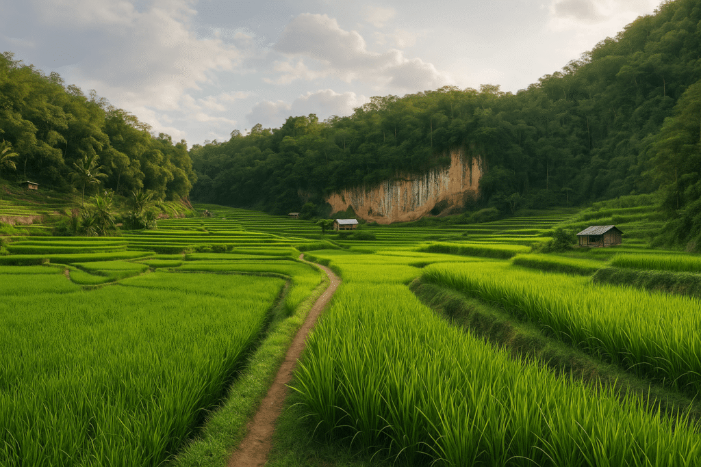Nikmati panorama ikonik Tebing Barat dari jalur pematang yang ramah wisatawan. Setiap musim menghadirkan pesona berbeda, dari mirror water awal tanam hingga golden paddy jelang panen. Pilih titik pandang rendah, menengah, atau tinggi untuk foto terbaik, dan datang sore hari demi cahaya paling dramatis.