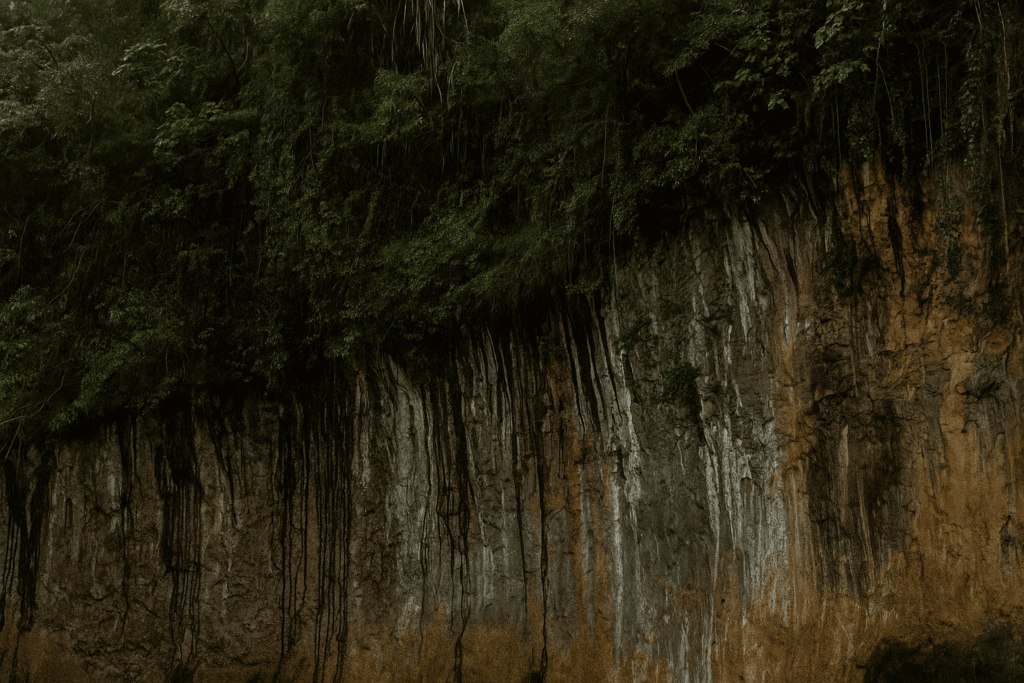 Cadas Gantung menyambut Anda dengan panorama yang mudah dikenali dan nyaman dinikmati. Dari jalur pematang di Desa Cilame, Kutawaringin, pandangan langsung mengarah ke Tebing Barat dengan garis langit yang tegas. Teras sawah mengikuti kontur lembah seperti undakan amfiteater. Tebing andesitnya tegak dengan overhang di bagian atas sehingga terlihat seperti kanopi alami. Menjelang sore, cahaya hangat menonjolkan relief dinding, jejak rembesan air, warna oker hingga hitam, serta peralihan tekstur antara batu yang keras dan bagian yang mulai melapuk. Komposisi ini memberi rasa skala dan kedalaman yang kuat.