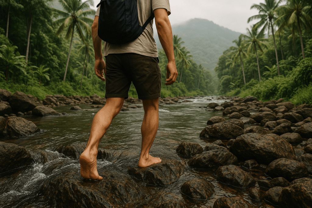 Pengalaman di Sungai Cadas Gantung dirancang bertahap, dari kegiatan santai hingga yang menantang. Jalur riverwalk menelusuri tepian sungai berkanopi bambu yang teduh, memberi kesempatan bagi pengunjung menikmati aliran air, bebatuan vulkanik, dan vegetasi riparian yang hijau. Titik mindfulness ditempatkan di bahu sungai yang stabil dengan pandangan aman ke alur air. Aktivitas fotografi long exposure dan pengamatan mikrohabitat seperti serangga air, lumut, dan alga dapat dilakukan tanpa mengganggu keseimbangan ekologi. Pada musim kemarau, kolam dangkal dan tekstur batu tampak jelas, sedangkan pada musim hujan arus meningkat sehingga diperlukan rambu situasional untuk keamanan.